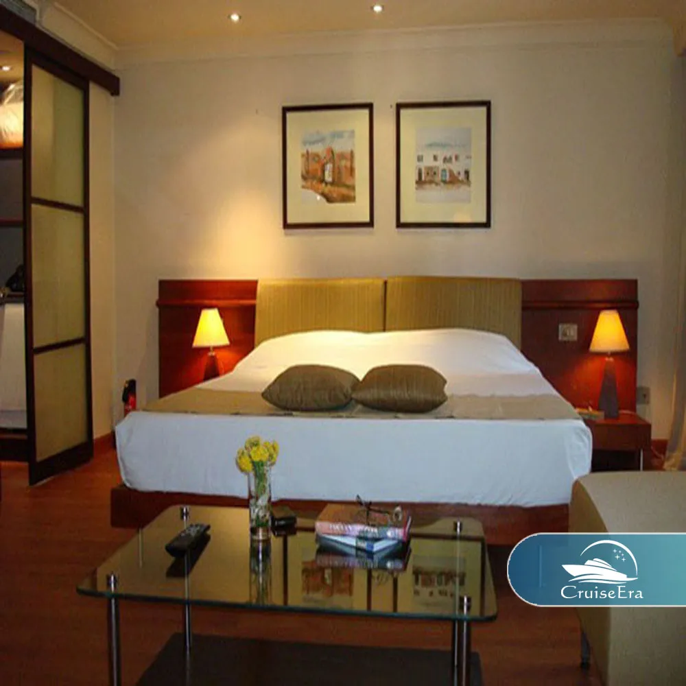The Al Jamila Nile Cruise Price offers incredible value, specifically for its “Boutique Hotel” style accommodations. Every cabin on the Al Jamila Nile Cruise is approximately 22 square meters and features floor-to-ceiling panoramic windows, allowing you to view the Nile’s beauty without leaving your bed. Your Al Jamila Nile Cruise Price also includes modern amenities like a private safe, minibar, and satellite TV. Booking El Jamila through CruiseERA ensures you get a 5-star deluxe room at a competitive Sabena Nile Cruise rate that balances luxury with affordability.