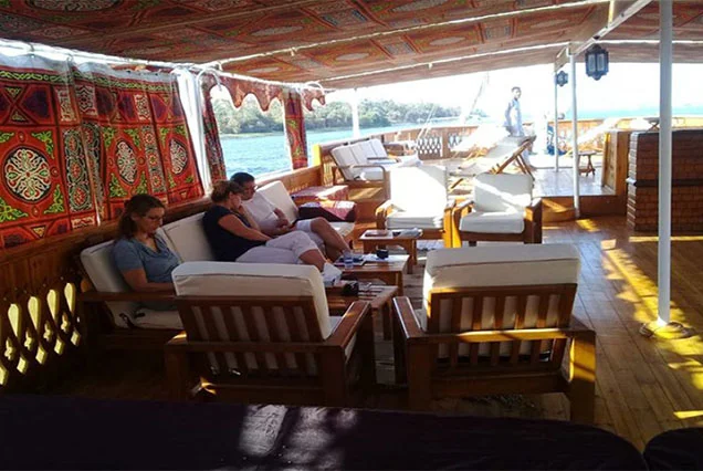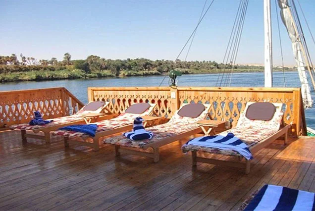 A bordo de la Dahabiya Crucero Nilo Miran, el tiempo se detiene. Disfrutará de una cubierta espaciosa para relajarse, comida auténtica preparada al momento y un servicio personalizado que atiende cada una de sus necesidades.