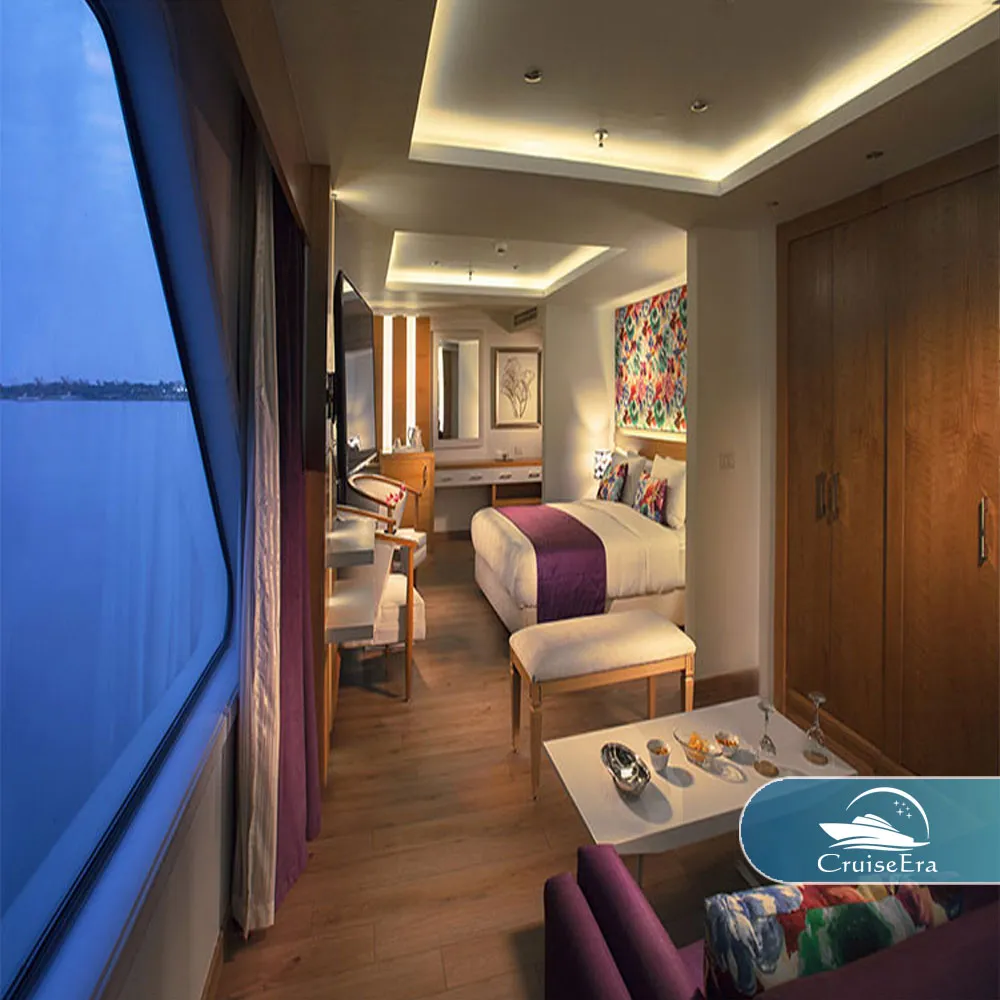 Viva una experiencia exclusiva recorriendo el Nilo a bordo del Crucero Nilo Acamar 5 Días Luxor Asuán, donde la elegancia clásica se une con el confort moderno para explorar la historia egipcia en un entorno de lujo cinco estrellas.