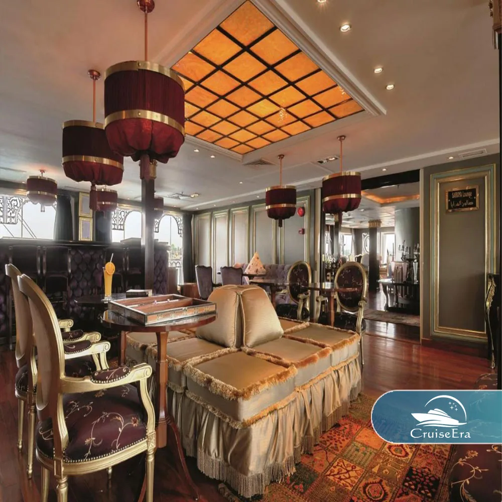 The SS Misr Price is reflective of its status as an ultra-private, boutique royal cruiser. Your booking includes Fine Dining at the Marasem Restaurant, entry to the elegant Saraya Lounge, and high-end Personalized Service from a dedicated crew. At CruiseERA, we ensure the SS Misr Price provides the best value for an all-inclusive experience that covers your luxury accommodation, gourmet meals, and private guided tours.