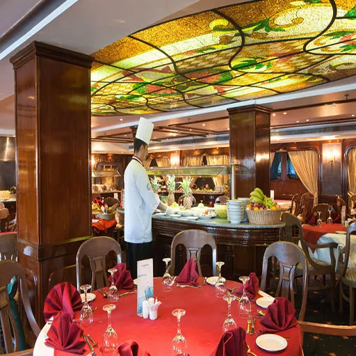 - Dining & Socializing: The ship features a dedicated Restaurant located on the lower deck, serving high-quality cuisine. The Lounge bar & Library offers a comfortable setting for socializing, and the Internet corner is conveniently located on the Mezzanine deck.