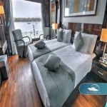 The Le Fayan provides a setting of unparalleled comfort and elegance for your expedition along the world’s longest river. Guests are invited to relax and take full advantage of the ship’s luxurious services and facilities, making it a home-away-from-home on the water. The ship’s accommodation is a masterpiece of design, featuring big, opulent rooms characterized by floor-to-ceiling glass windows that perfectly frame the mesmerizing Nile sceneries. Whether you choose one of the spacious rooms or a luxury suite, the continuous, stunning vistas are a defining feature of the Le Fayan.