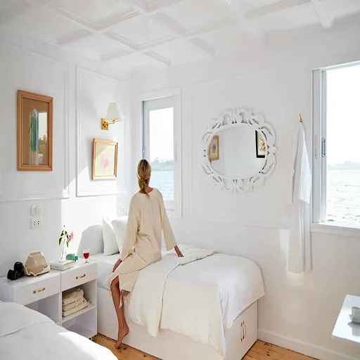 - Comfort: These rooms are bright and thoughtfully spacious, designed for guests who want plenty of room to settle in and feel at home. Their newer finishes and airy layout create a modern comfort that enriches the sailing experience aboard the Roman Dahabiya.