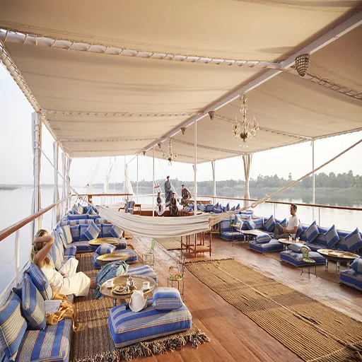 The Roman Dahabiya is designed with space and light as key priorities, featuring a variety of meticulously crafted rooms and suites. This focus on generous space perfectly complements the leisurely pace of this luxury Dahabiya sailing experience.