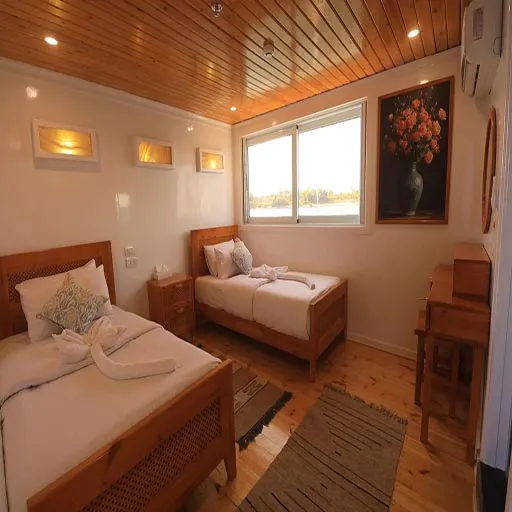 - Exceptional Views: All cabins are air-conditioned and feature large, panoramic windows, ensuring you have a stunning, private view of the beautiful Nile scenery at all times.