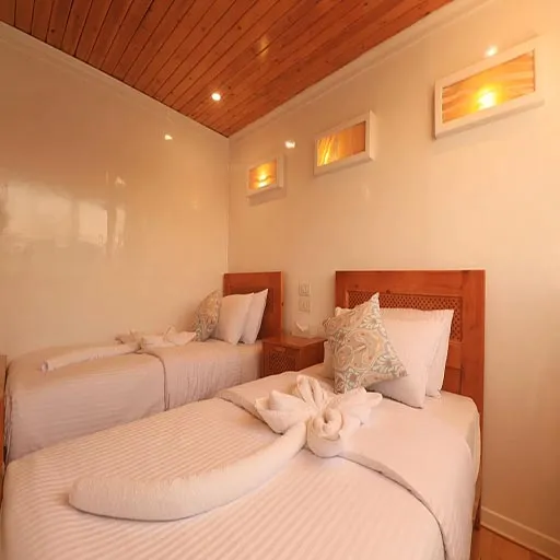 - Boutique Accommodation: The cruise features 6 double cabins (approx. 13 sqm) and 1 Suite (approx. 21 sqm) with a large bed and private terrace. Each cabin is sumptuously furnished with Egyptian cotton linens.