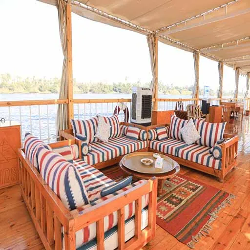 - Authentic Sailing: An accompanying motorboat is used to pull the Three Pyramids Dahabiya in case the wind is calm, ensuring a smooth, reliable journey without sacrificing the authentic sailing experience.