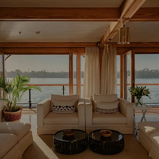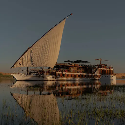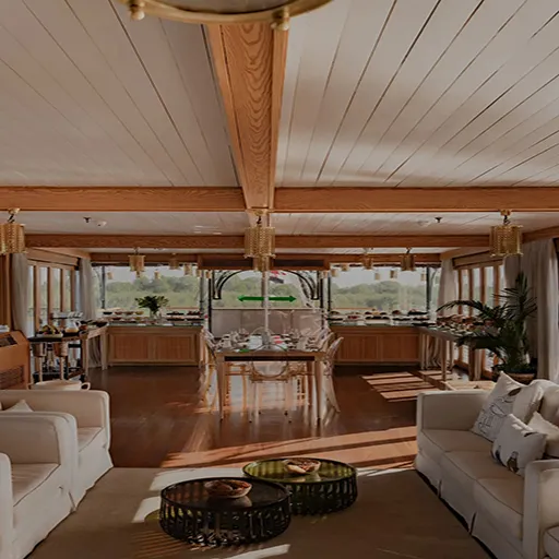 The Sanctuary Zein Nile Chateau is a magnificent bespoke dahabiya, designed to evoke the glamour of old-world sailing with modern comforts. Its extended open spaces and attention to detail create a truly serene atmosphere.