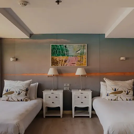 | Lake Nasser Cabin | Colorful, bright, and inspired by nature. | Twin beds, touch of elegance, evocative nature imagery. |
